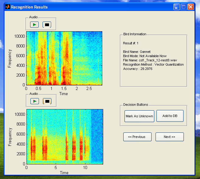 Developed a recognition algorithm for identification of bird species by their vocalizations, based on Cepstrum Coefficients and a Vector Quantization classifier.